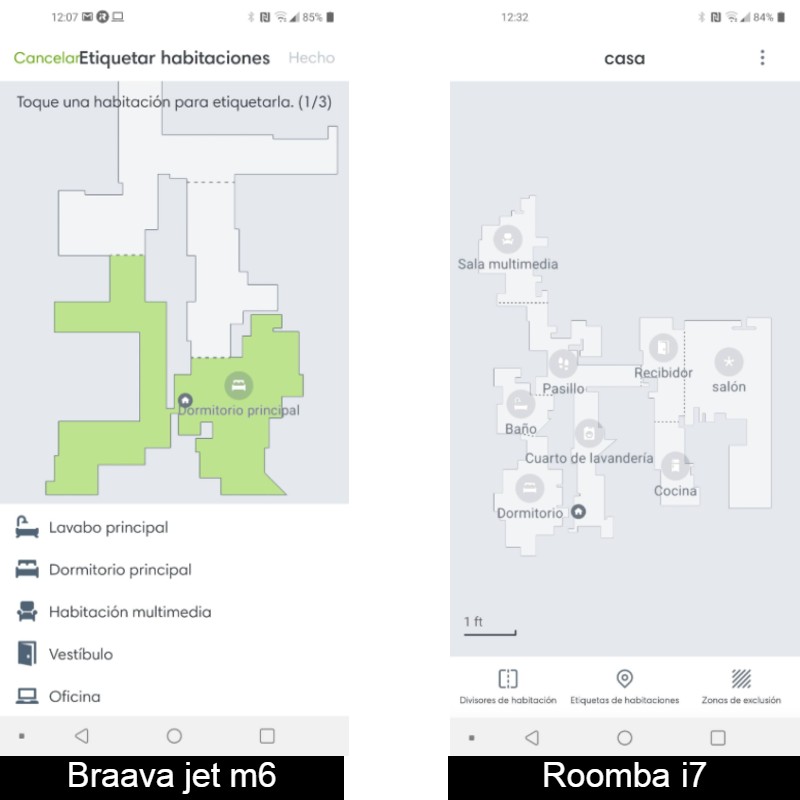 Uno de los puntos fuertes de los robots de iRobot es su sistema de mapeado inteligente Imprint Smart Mapping que permite que sus robots memoricen el plano de la casa permitiendo esta limpieza selectiva de habitaciones y que los robots vuelvan a su base sin necesidad de recogerlos. Cuando el mapa está hecho correctamente y contamos con robot aspirador podemos elegir la opción de aspirar primero una habitación antes de fregarla o limpiar el polvo.