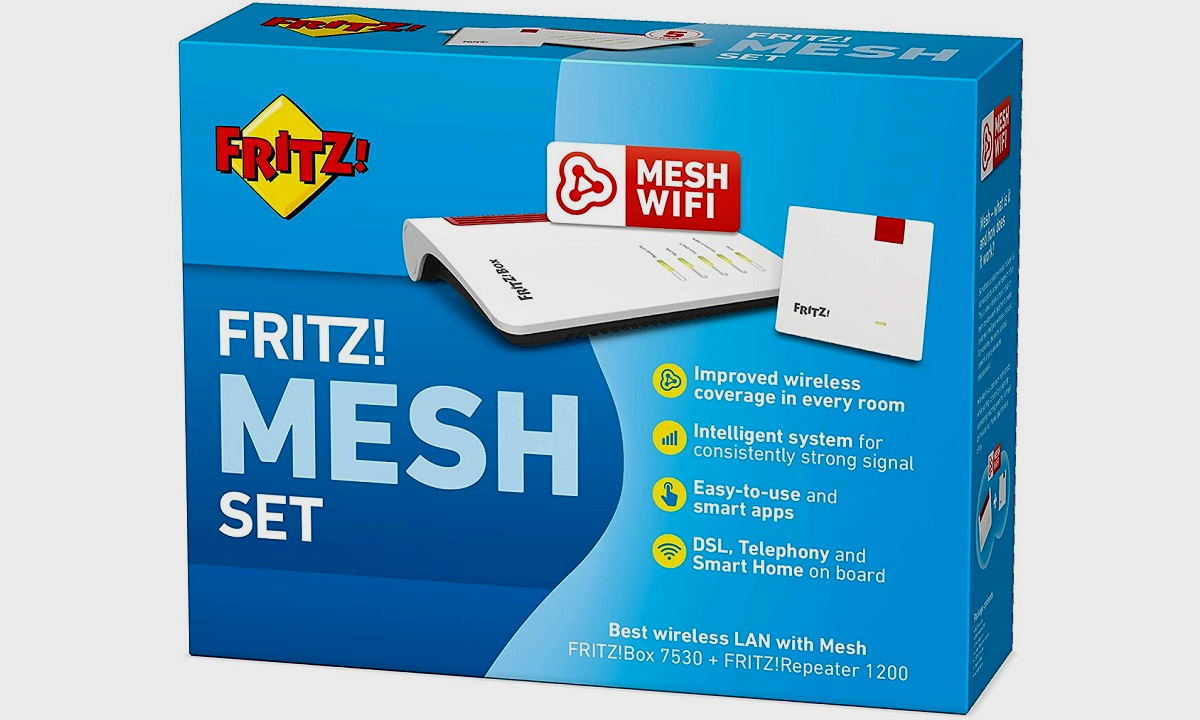 Con el FRITZ! Mesh Set de AVM tenemos una combinación de router y repetidor Wi-Fi de alto rendimiento que nos permitirá crear una red Wi-Fi Mesh de una manera sencilla y segura. Es muy fácil, el router FRITZ!Box 7530 establece la conexión a Internet y se convierte en el epicentro de nuestra red. El proceso de instalación y de configuración es muy simple e intuitivo, y una vez que hayamos terminado solo tendremos que conectar el FRITZ!Repeater 1200 en el enchufe donde queramos utilizarlo y sincronizarlo con el FRITZ!Box 7530 pulsando un botón.