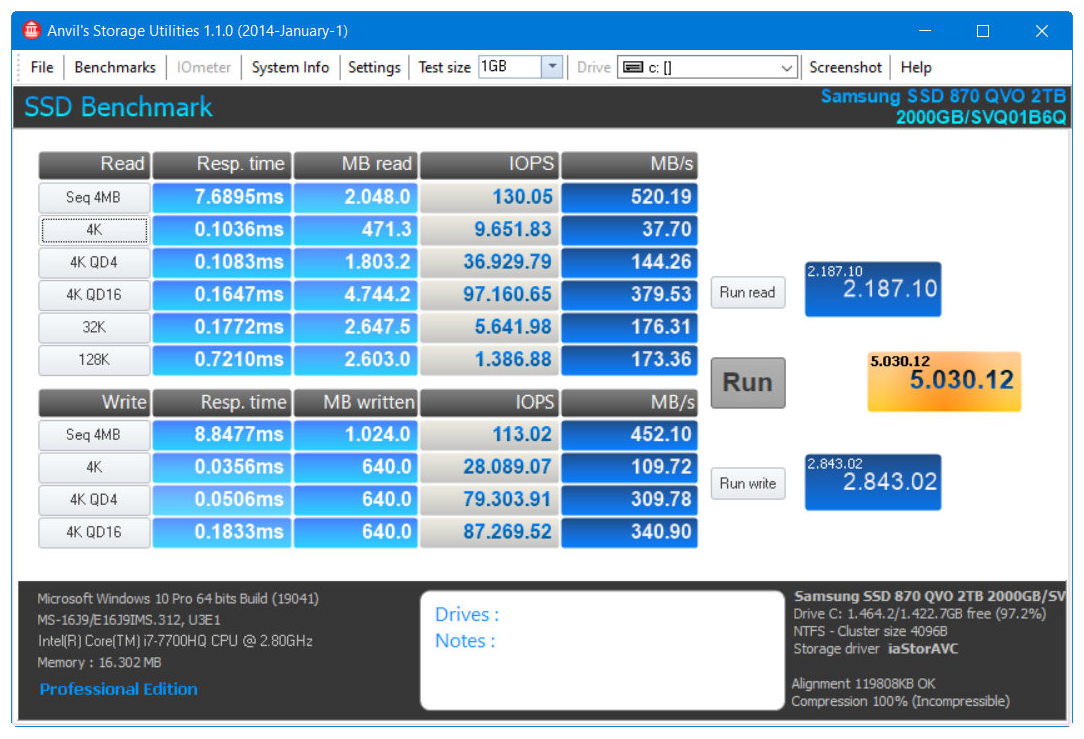 Lo mismo con otro de los benchmark para SSD más usados, el Anvil Storage: