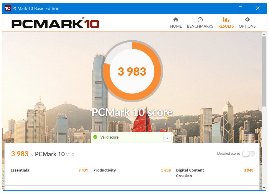 Finalmente, hemos ejecutado el test global PC Mark 10. El benchmark de Futuremark es uno de los más completos de la industria y ejecuta varios test de rendimiento para ordenadores personales, evaluando tareas diarias como navegar por sitios web, chat de vídeo, escritura y hojas de cálculo, edición de fotos y vídeos o juegos. La intención es comprobar si los resultados varían frente a otras unidades de almacenamiento, pero no, en estas SATA de gama alta la puntuación es prácticamente idéntica a la alcanzada por este mismo equipo con otras unidades.