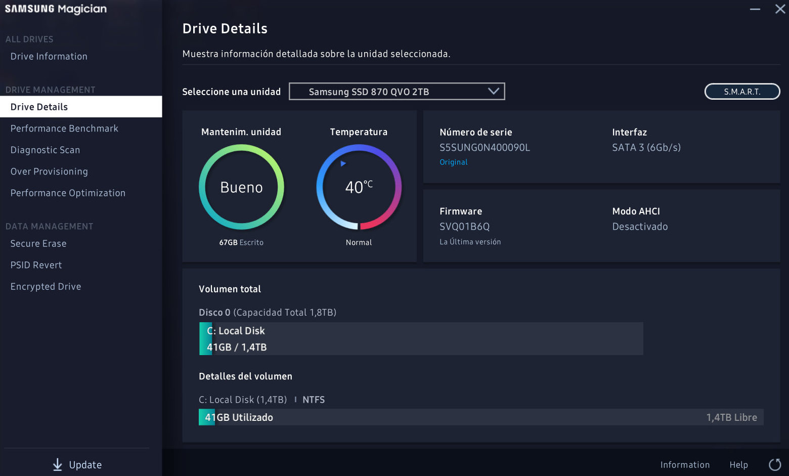 - Gestor de software: Samsung Magician