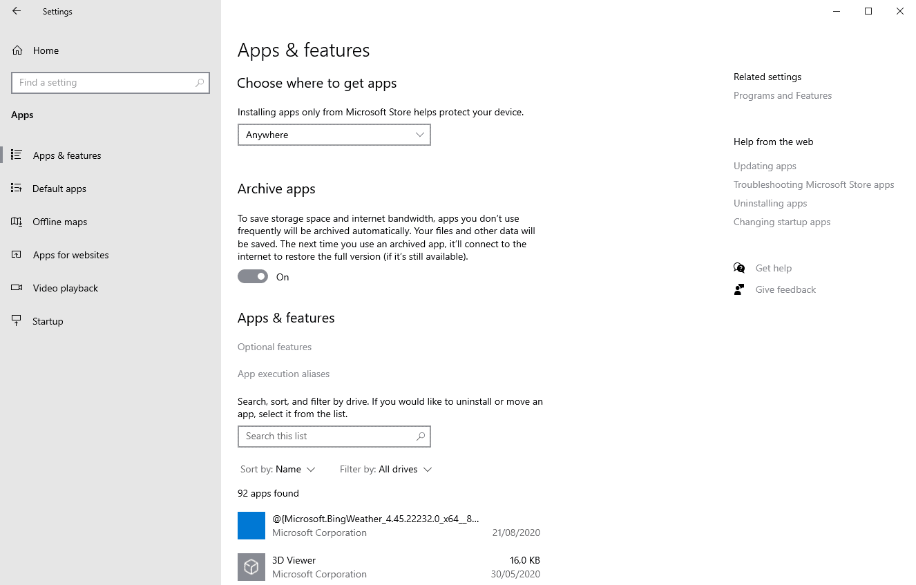Primer vistazo al archivo de aplicaciones de Windows 10