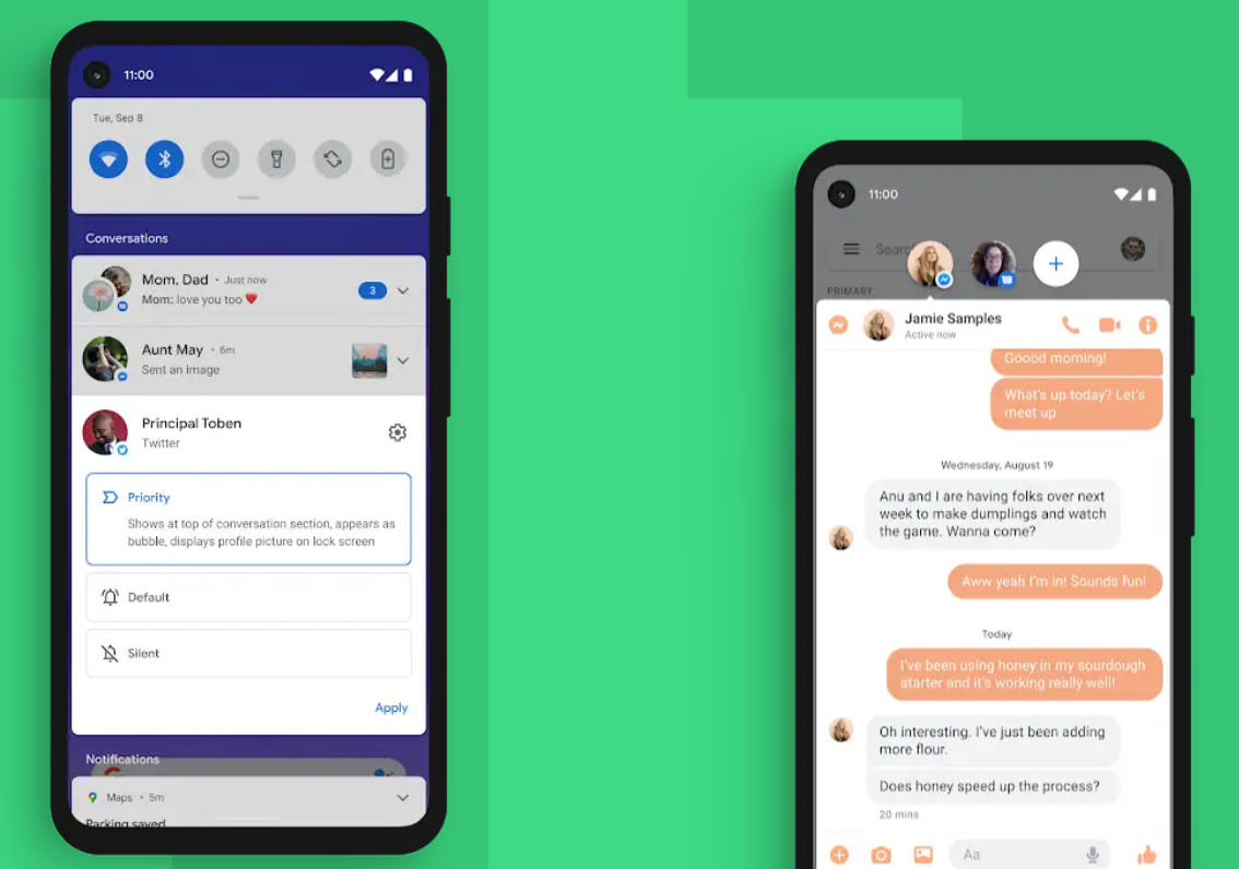 Android 11 estrena un apartado específico para las conversaciones dentro de la sección de notificaciones. Ello facilita la administración y el manejo de las mismas en aplicaciones como las de mensajería y permite priorizar las conversaciones con los contactos más importantes para no perder ningún mensaje importante.