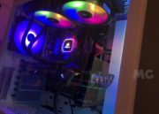 La placa base que hemos montado tiene formato microATX y dispone de disipación pasiva tanto en la zona del VRM como en la del chipset, aunque no son especialmente voluminosos. En el frontal hemos montado dos ventiladores Corsair ML120 RGB Pro, y en la parte trasera hemos colocado otro ventilador Corsair ML120 RGB Pro.