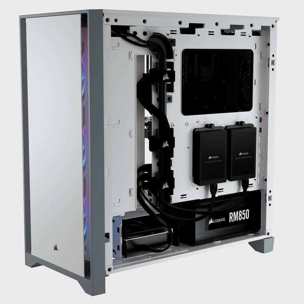 Como sabrán muchos de nuestros lectores la gestión del cableado es fundamental a la hora de elegir un buen chasis, y en este aspecto la Corsair 4000D brilla con luz propia. Corsair ha integrado un sistema de gestión del cableado que nos permite realizar montajes con una mayor facilidad y mantener todo el cableado perfectamente ordenado en el lateral gracias al sistema «Rapid Route», que unifica el cableado principal y nos deja un espacio muy generoso de 25 mm (2,5 cm).