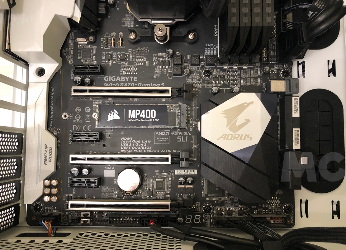 La instalación del Corsair MP400 no tienen ningún misterio, solo tenemos que buscar una ranura M.2 en nuestra placa base. Si tenéis varias, os recomiendo que utilicéis aquella que no esté cerca de ningún componente que pueda generar una gran cantidad de calor, y que reciba un buen flujo de aire. Esto nos ayudará a reducir las temperaturas de trabajo del SSD, y nos permitirá disfrutar de un rendimiento consistente y estable.