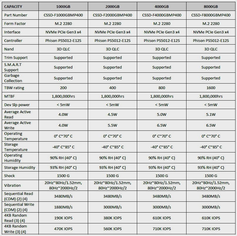 Como anticipamos, la compañía estadounidense ha lanzado una serie completa de unidades SSD que forman la gama Corsair MP400. En total encontramos cuatro versiones que parten de una base común, ya que utilizan la controladora Phison PS5012-E12S, montan memoria QLC apilada en 3D y recurren al estándar PCIE Gen3 x4 y al protocolo NVME para ofrecer un alto nivel de rendimiento. Todos tienen 5 años de garantía.