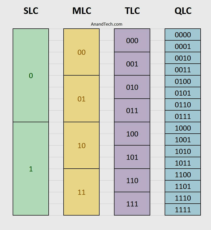 Gracias a la memoria NAND Flas QLC es posible almacenar hasta cuatro bits por celda, lo que permite crear unidades SSD con una mayor capacidad de almacenamiento y un coste de producción menor. Todo esto se traduce, en resumen, en SSDs más baratos y de mayor capacidad.