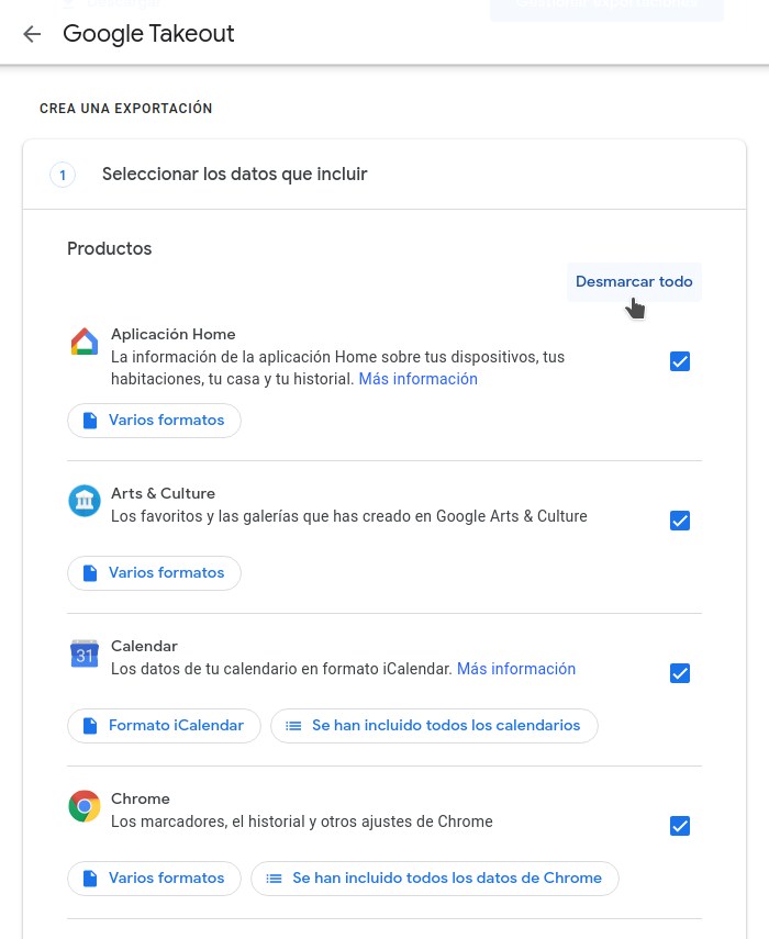 En concreto, a través de Google Takeout podrás descargar: