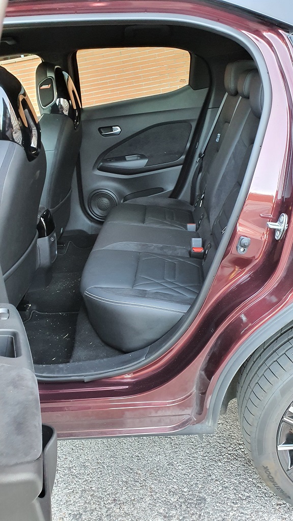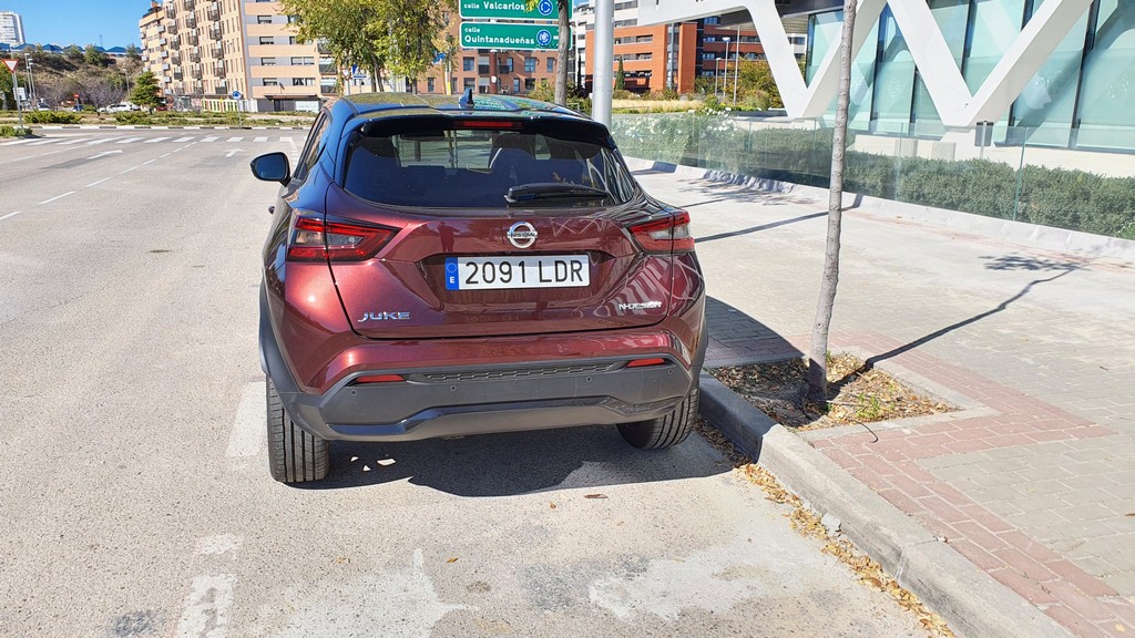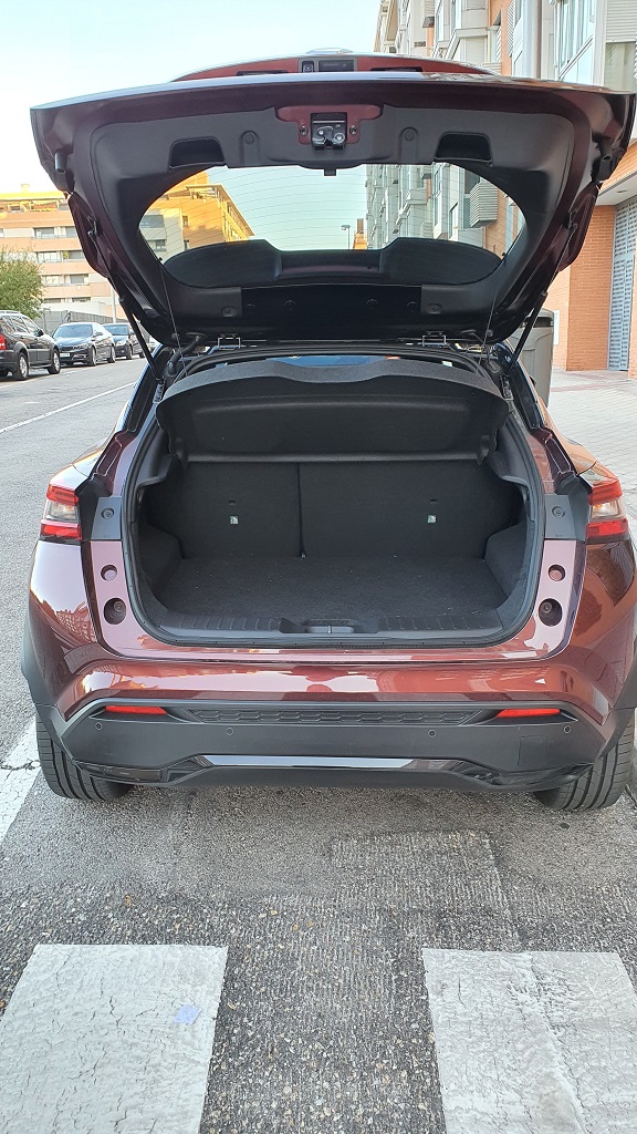 En la zona posterior es donde el nuevo Juke más ha ganado al crecer con respecto a la generación anterior. El espacio es más accesible y más grande, con buen espacio para las piernas. No es cómodo que viajen tres personas, pero es una característica común en coches de este tamaño. En altura también se ha ganado y ahora es posible que se acomoden sin problemas incluso personas de más de 1.80 metros.
