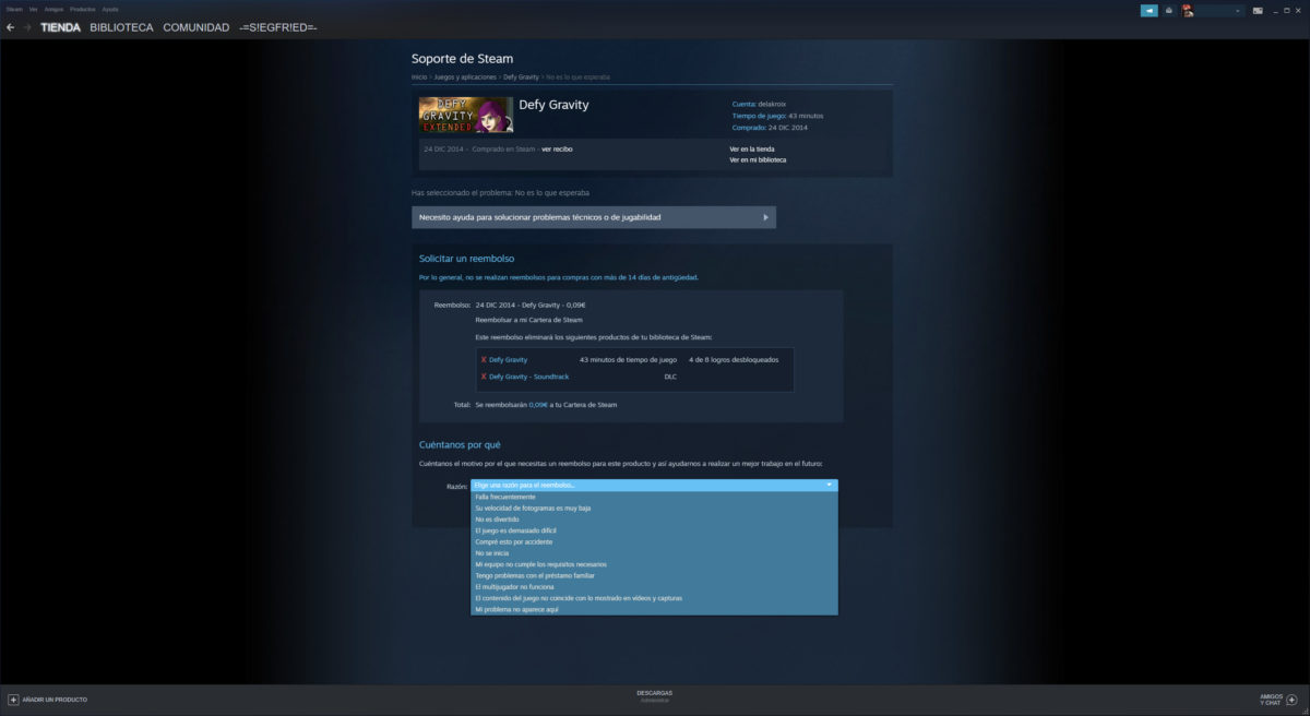 Cómo solicitar un la devolución y reembolso de un juego en Steam
