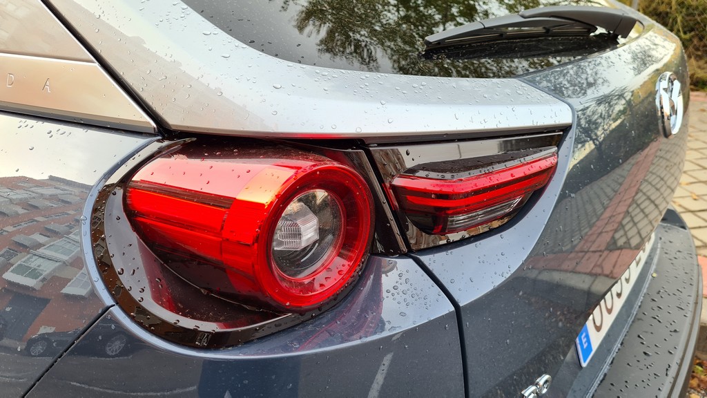 Otro detalle que contribuye a la exclusividad del enfoque de la movilidad eléctrica por parte de Mazda es que se ha incorporado un generador de sonido que de forma muy suave nos transmite qué esfuerzo está haciendo el motor, de una forma similar a cuando subimos las revoluciones en un motor de explosión pero de una forma casi melódica. Este sonido se filtra en el interior a través de los altavoces, no se utiliza para avisar a los peatones de la presencia del vehículo. Se puede desconectar pero resulta tan agradable e incluso útil que no sentimos la necesidad de hacerlo.
