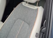 Pero es en el interior del MX-30 donde los diseñadores japoneses han dado rienda suelta a sus propuestas de diseño. Los asientos están fabricados en una combinación muy vistosa de cuero artificial y tela con una textura realmente agradable. Encontramos más tela en los revestimientos de las puertas y cuero acolchado en los apoyabrazos tanto el de las puertas como el central.