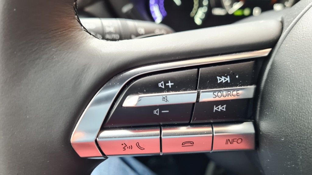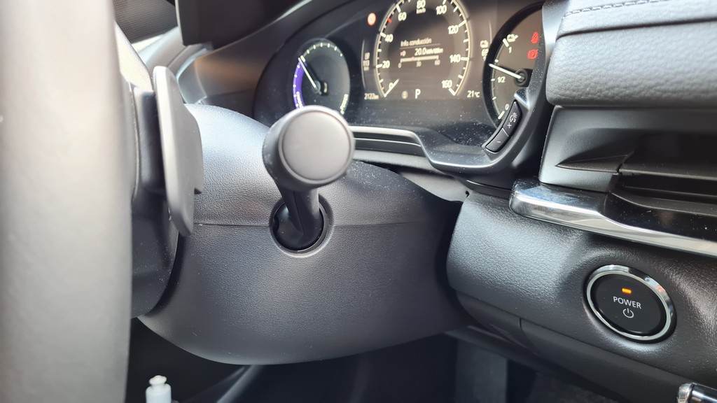 Otro detalle que contribuye a la exclusividad del enfoque de la movilidad eléctrica por parte de Mazda es que se ha incorporado un generador de sonido que de forma muy suave nos transmite qué esfuerzo está haciendo el motor, de una forma similar a cuando subimos las revoluciones en un motor de explosión pero de una forma casi melódica. Este sonido se filtra en el interior a través de los altavoces, no se utiliza para avisar a los peatones de la presencia del vehículo. Se puede desconectar pero resulta tan agradable e incluso útil que no sentimos la necesidad de hacerlo.