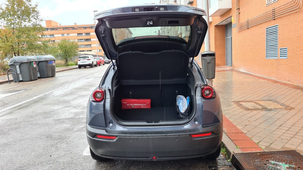 El maletero del MX-30 no es de los más grandes, tiene un espacio disponible de 366 litros que es algo justo para un coche de su tamaño pero más que suficiente par aun urbano de uso mixto que en realidad es el concepto de este modelo japonés. Los revestimientos del mismo son robustos y de buena calidad.