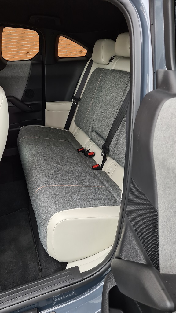 En cualquier caso en cuanto uno se acostumbra al vaivén de la apertura de puertas la operación es sencilla y bastante cómoda. Además las puertas traseras son «de verdad» y se notan robustas y resistentes con un sistema de cierre sólido y seguro. El espacio en los asientos es algo menor que en un CX-30 pero dos adultos viajarán cómodos e incluso un tercero si no es demasiado grande.
