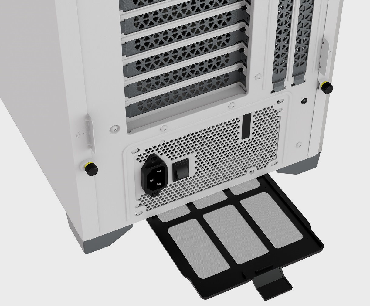 Como habréis podido imaginar, una fuente modular nos facilitará enormemente el montaje, y nos permitirá aprovechar al máximo el potencial de la Corsair 5000D Airflow. No es imprescindible, pero sí muy recomendable, y teniendo en cuenta que hoy por hoy podemos encontrar modelos de calidad por menos de 80 euros, creo que ya no vale la pena optar por una fuente no modular, salvo casos muy concretos (montajes con presupuestos muy ajustados). Tenemos espacio de sobra en la parte trasera para colocar accesorios como un Lightning Node Core, por ejemplo.