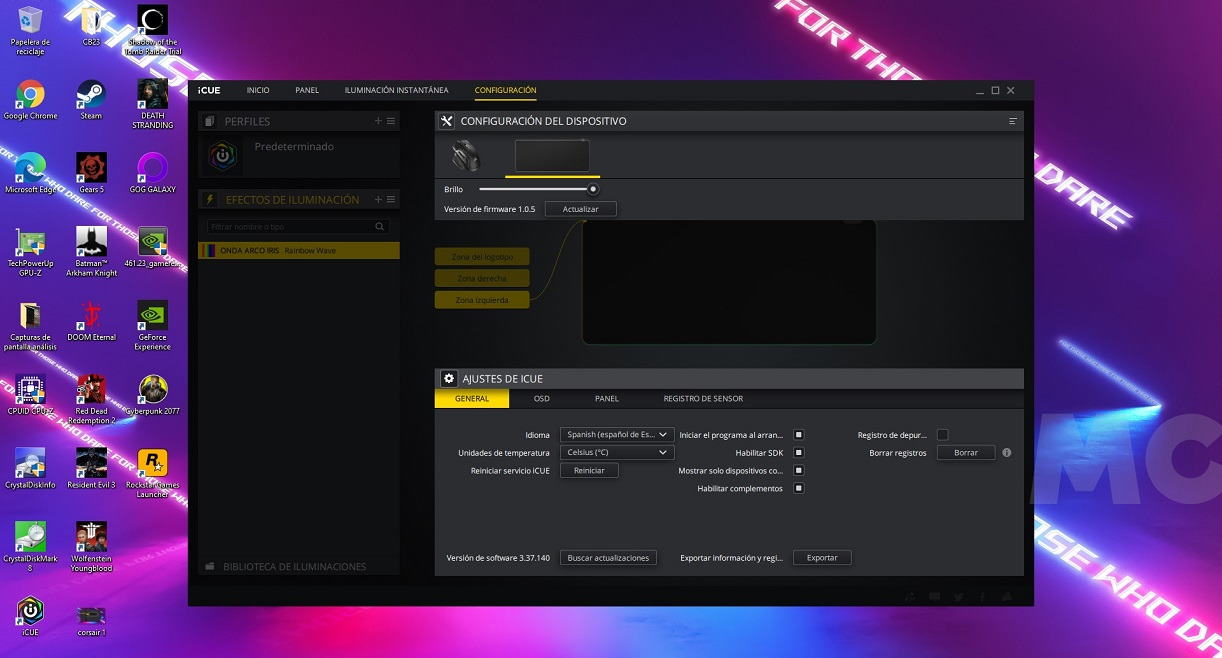 A través de iCUE accederemos a una interfaz sencilla e intuitiva que nos permitirá configurar diferentes perfiles y opciones de iluminación. También podremos crear nuestros propios perfiles sin esfuerzo. Como podéis ver en la galería adjunta, no tiene ninguna complicación.
