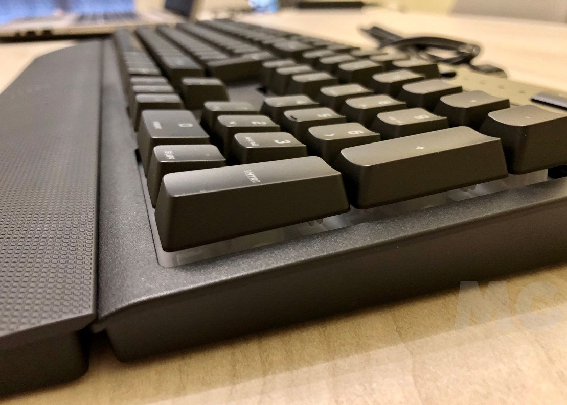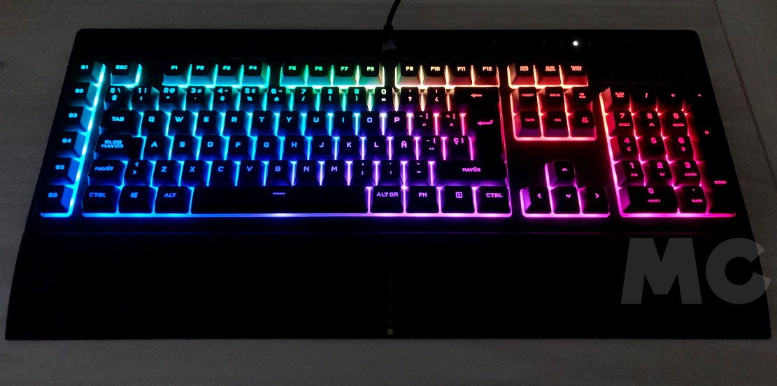 Las sensaciones que transmite al tacto son muy buenas. Corsair ha combinado plástico ABS en diferentes tonalidades, y también en distintas texturas para crear una experiencia de uso verdaderamente única. La parte en plástico brillante es totalmente lisa, mientras que la zona en plástico mate tiene un texturizado ligeramente rugoso. Por su parte, las teclas también están fabricadas en plástico ABS, tienen un acabado ligeramente cóncavo y su serigrafía se ha grabado con láser. Cada tecla tiene iluminación LED RGB totalmente individualizada, y personalizable.