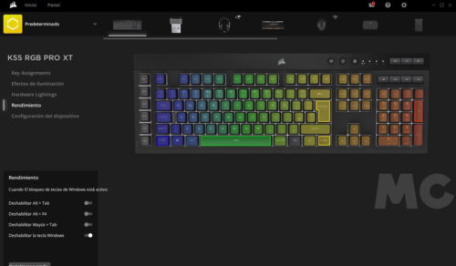 La integración del Corsair K55 RGB PRO XT a nivel de software es perfecta, pone a nuestra disposición todo un mundo de posibilidades en términos de personalización y ofrece una experiencia de uso muy buena, tanto en tareas de ofimática y mecanografía como en juegos exigentes.
