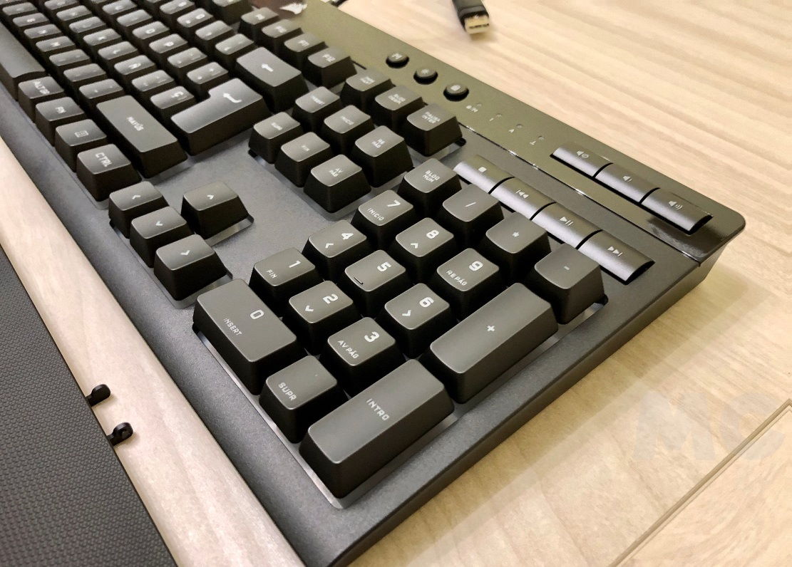 Además de la clásica distribución de teclas «QWERTY», el Corsair K55 RGB PRO XT viene con un bloque de seis teclas en la parte izquierda que podemos utilizar para crear macros, y que ofrecen una integración total con el Stream Deck. En la parte de la derecha, nos encontramos con un conjunto de botones multimedia que nos permitirán realizar acciones concretas con un solo toque, como por ejemplo saltar canciones, subir o bajar el volumen y detener la música.