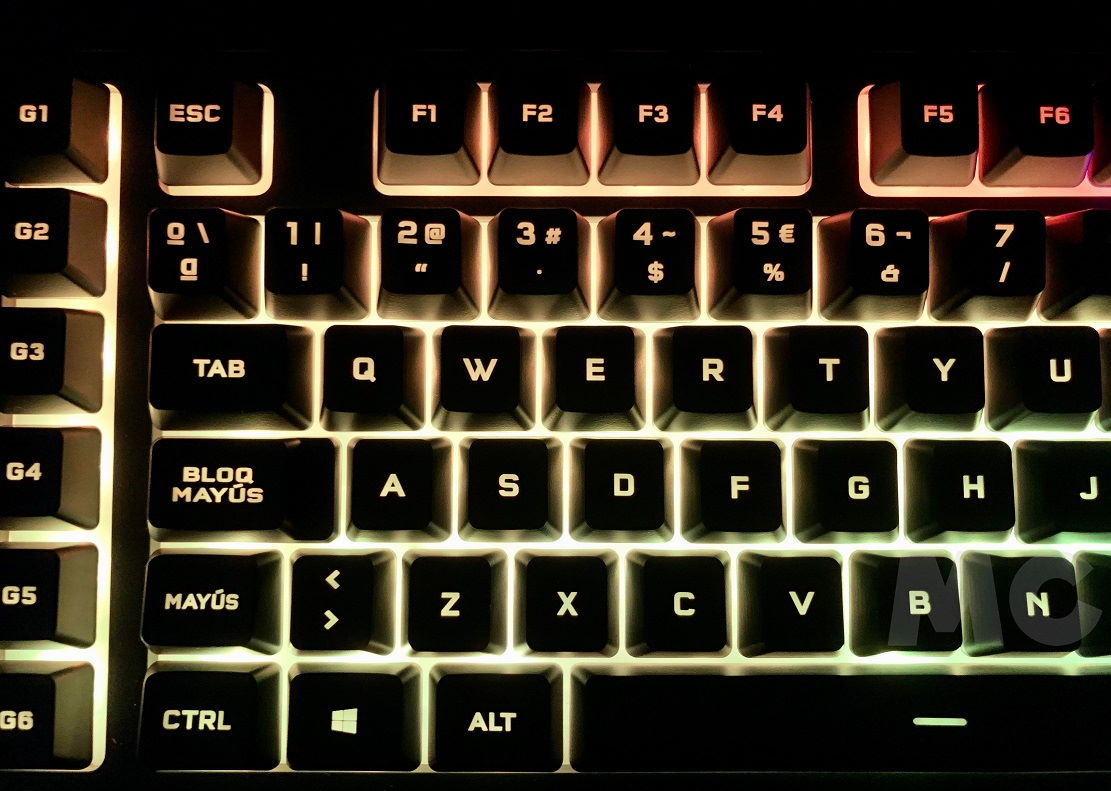 El proceso de instalación y de configuración es muy sencillo, y muy intuitivo. No tenemos que entrar en complicados ajustes, y podemos grabar marcos casi al instante, gracias a la tecla «M» dedicada que se encuentra situada en la zona superior. Así es cómo funciona: mantenemos pulsada dicha tecla, el indicador luminoso parpadea y podremos proceder a realizar una secuencia de teclas concreta, cuando acabemos pulsamos de nuevo la tecla «M» y a continuación la tecla macro a la que queremos vincularla («G1», por ejemplo). Para eliminar un macro, solo tenemos que mantener la tecla «M» pulsada y tocar la tecla macro que queramos limpiar.