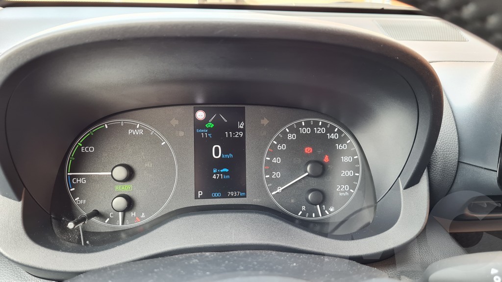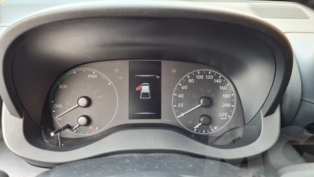 Los acabados son en un plástico duro que sin embargo transmite una sensación de calidad a la vista y al tacto mayor que la que ofrecen otros fabricantes en modelos de categoría similar. El diseño de los indicadores tras el volante sin embargo es prácticamente el mismo aunque se ha actualizado ligeramente la parte gráfica sigue disponiendo el indicador analógico de velocidad en la parte derecha y en la izquierda el que muestra el funcionamiento del sistema híbrido con una pequeña pantalla en el centro.