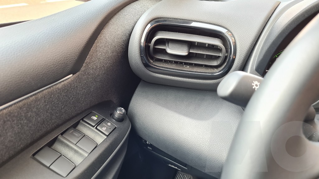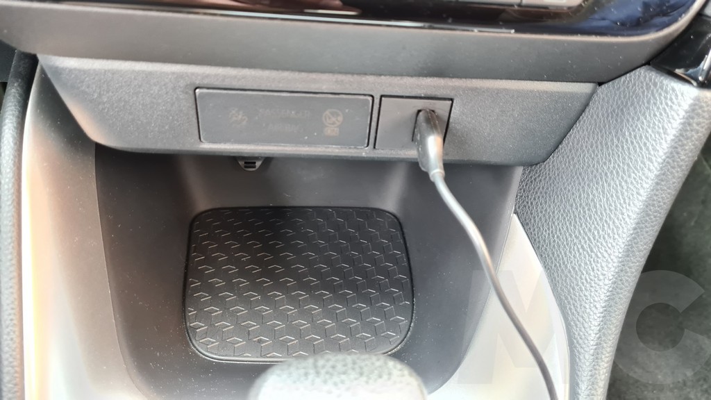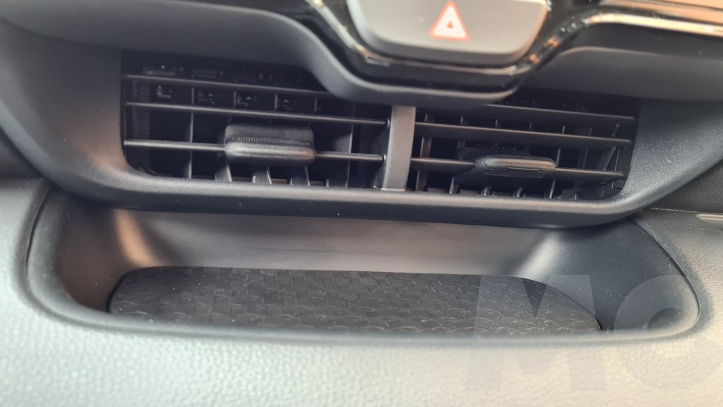 El salpicadero cambia de forma y ya no tiene un diseño plano sino que consiste en dos zonas, la superior en la que se encuentran los elementos principales y una especie de repisa más abajo que sobresale de ella y en la que se colocan los mandos de ventilación y en la que se encuentran distintos espacios portaobjetos. En este sentido hay que apuntar que en el hueco destinado a ello (que dispone de carga inalámbrica) un móvil de cierto tamaño es difícil de acomodar en estos espacios, máxime si dispone de una funda o protección. Además no dispone de goma antideslizante aunque sí de un borde para impedir que el teléfono se caiga.