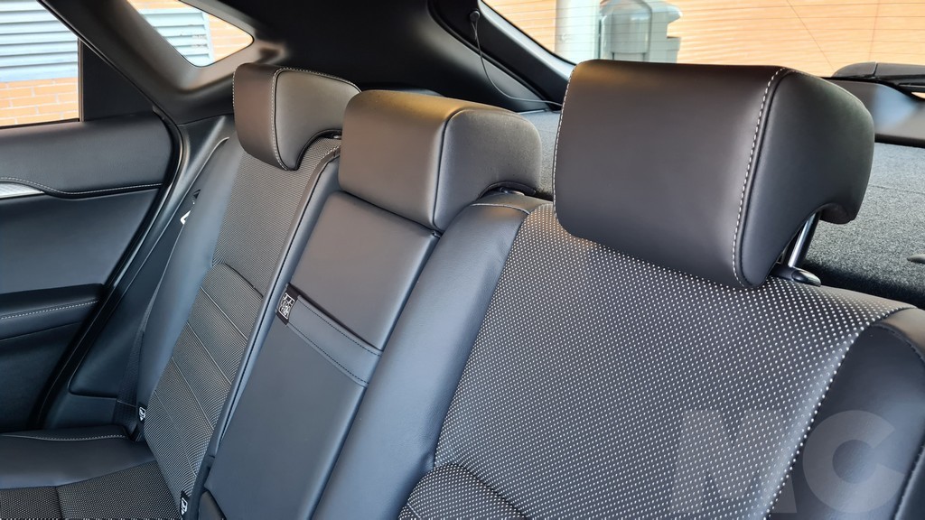 En la parte posterior los asientos también son cómodos y hay espacio suficiente para tres ocupantes con suficiente distancia para acomodar las piernas sin problemas y también en altura, ya que aunque el techo desciende como en otros SUV de vocación deportiva la inclinación de los asientos hace que la distancia a la parte superior sea grande. Dispone de reposabrazos central lo que como es habitual hace que el respaldo de la plaza del centro sea algo más incómoda.