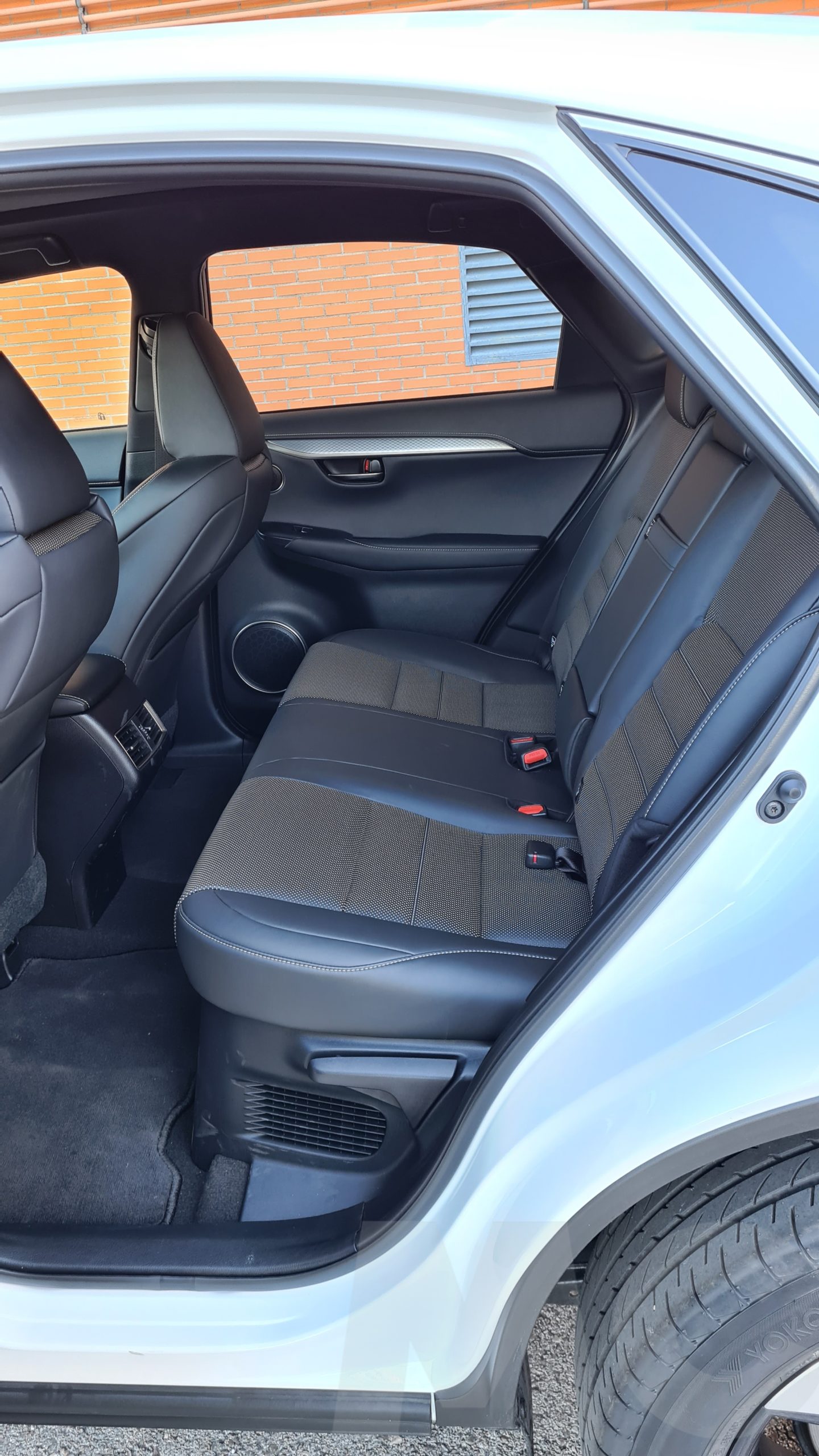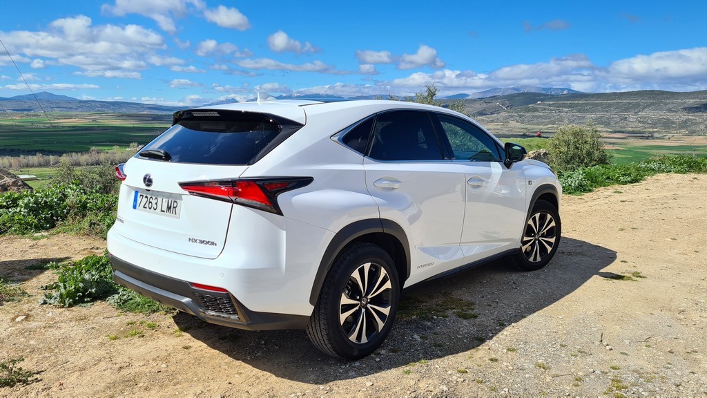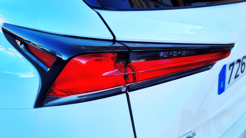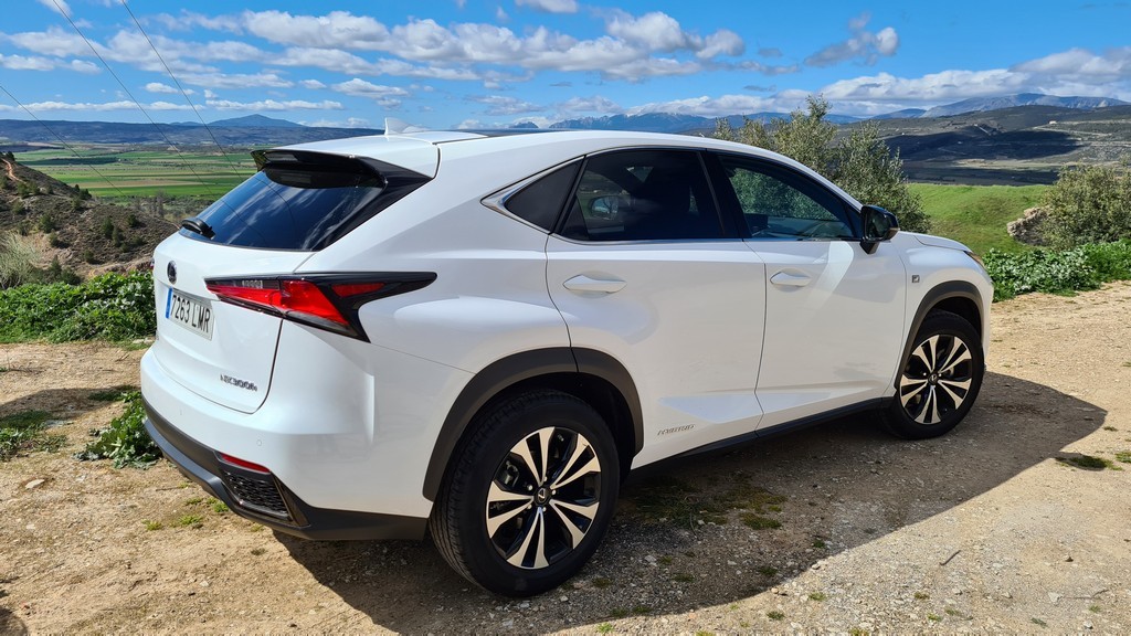 En la parte trasera con respecto a la generación anterior se han retocado el paragolpes, los grupos ópticos que ahora tienen un nuevo diseño más afilado y las salidas del escape del motor. Las líneas del perfil del NX son, como en el resto de los SUV de la marca japonesa, de corte deportivo y aerodinámico y termina en la parte trasera con un pronunciado spoiler. Los laterales lucen también volúmenes pronunciados para subrayar el dinamismo del coche y molduras decorativas. En definitiva es un SUV que no esconde para nada su aspiración deportiva.