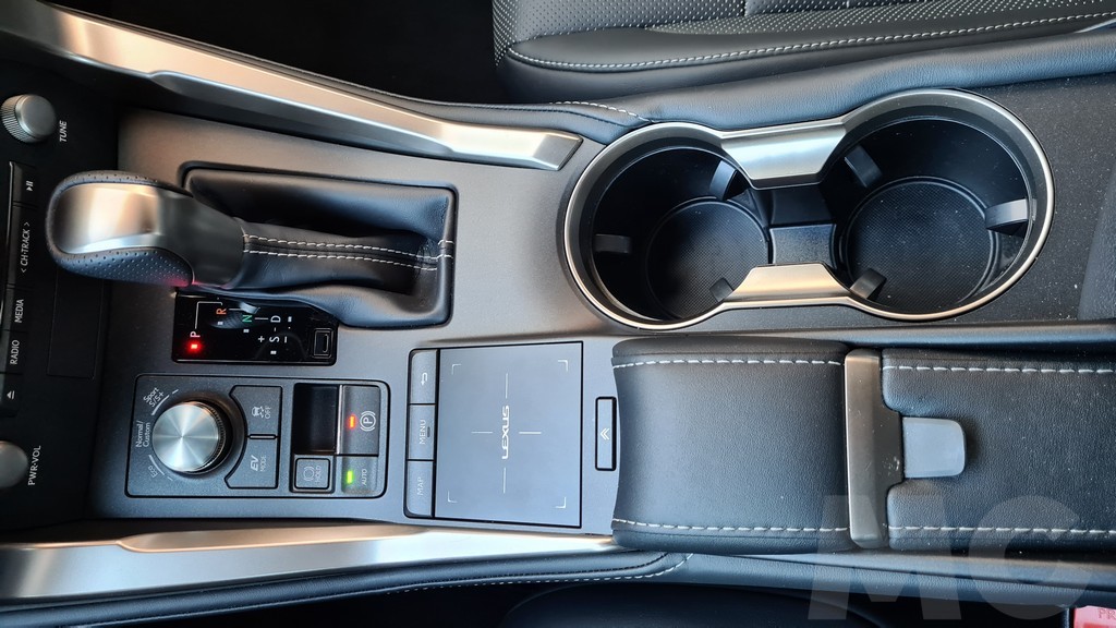 En lo que respecta al cambio nos encontramos a la clásica caja automática de Toyota que siempre nos va a dar la impresión de que revoluciona demasiado el motor del coche cuando pisamos el acelerador pidiendo potencia. En el caso del NX una insonorización excelente amortigua bastante este efecto pero sigue siendo molesto, sobre todo acostumbrados o bien al habitual subir de revoluciones progresivos de los motores de explosión o bien el silencio absoluto de los eléctricos.