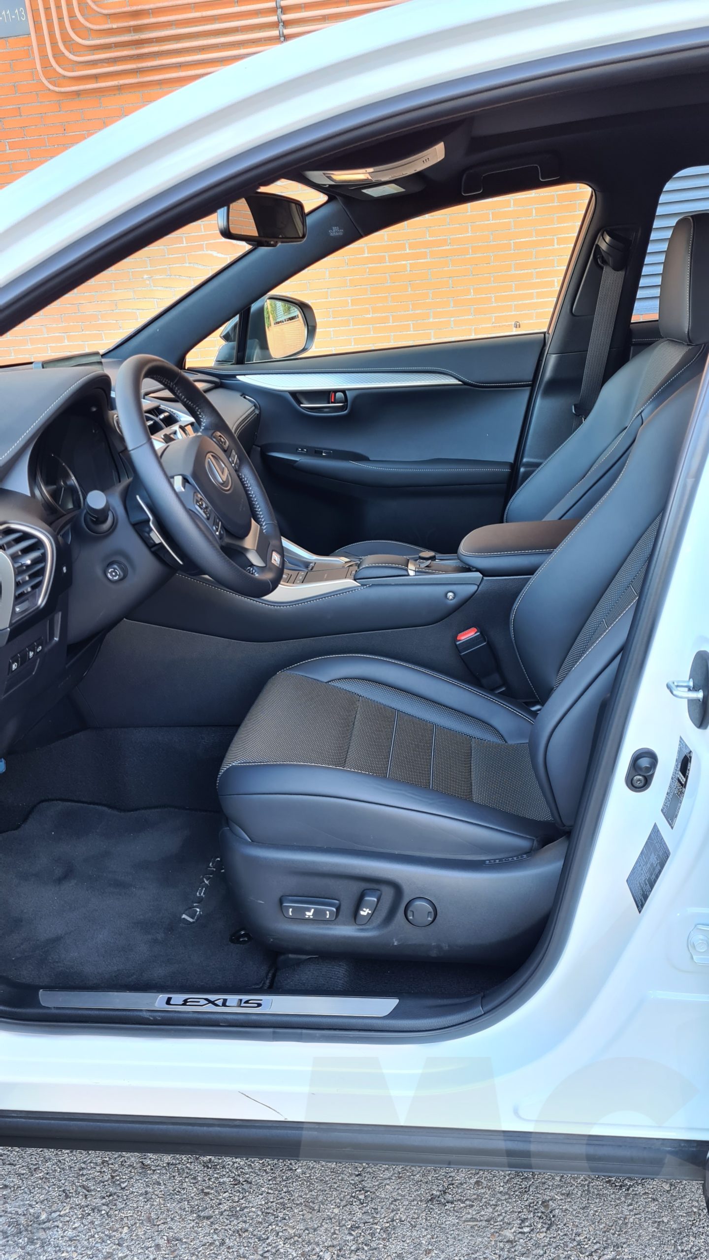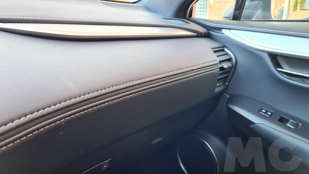 En el interior el diseño del NX se nutre de las mismas directrices que están presentes en los otros modelos de la marca. En la parte delantera los elementos «arropan» tanto al conductor como al acompañante, con un salpicadero voluminoso y un túnel central ancho y alto para que se pueda apoyar con comodidad el antebrazo en el acolchado del mismo. De esta forma el brazo reposa y podremos accionar sin dificultad todos los controles que se encuentran entre el reposabrazos central y el salpicadero como el selector del cambio, la zona táctil para el control del sistema de información y entretenimiento, la palanca de marchas, el selector de modos de conducción, el freno de mano eléctrico etc.