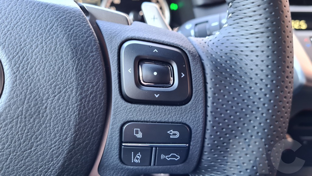 Una de las novedades de este NX es la pantalla del sistema multimedia que crece por encima de las 10 pulgadas. Está en una posición ideal en la parte alta del salpicadero, justo encima de las salidas de ventilación centrales, y como en versiones anteriores se controla desde la zona de control táctil en el reposabrazos ya que la pantalla no es sensible al tacto. El sistema sigue siendo eficaz y muy legible aunque, como pasa con los modelos de Toyota, es cierto que quizás vaya tocando una renovación del interfaz.