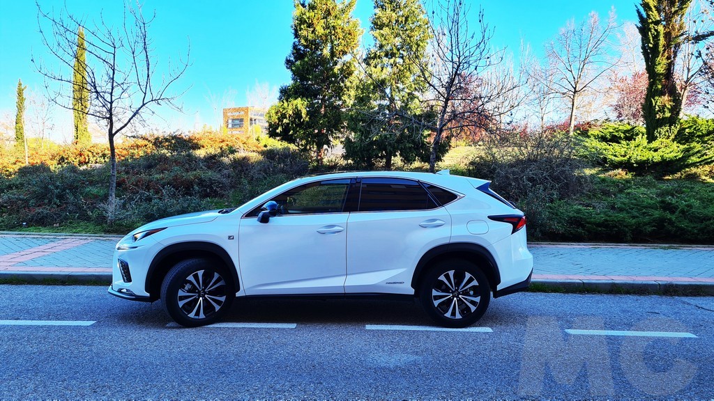 El caso es que este Lexus NX 300h es un SUV imponente con más de cuatro metros y medio de largo. El diseño y distintas partes del equipamiento de este modelo se han actualizado con respecto a la anterior generación, aunque la mecánica híbrida se mantiene prácticamente igual. En el exterior destaca una gran parrilla para la toma de aire de forma geométrica, dos trapecios superpuestos unidos por su lado menor. El superior, el más pequeño, enmarca las líneas de la carrocería que arropan los afilados grupos ópticos de la parte superior.