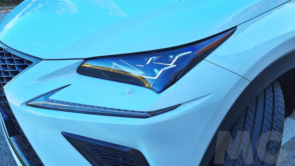 El trapecio inferior luce a los lados unas entradas de aire laterales hundidas en el paragolpes en color negro y con la misma rejilla que la parrilla. Debajo de estas unas discretas luces de posición que limitan con un spoiler en color plateado que sobresale de la carrocería. El aspecto es moderno y deportivo y supone una ligera actualización con respecto al aspecto que tenía la generación anterior del NX que ya apostaba por las formas dinámicas y musculosas para destacarse del resto de la competencia.