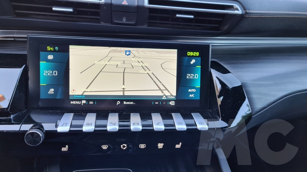 Si línea exterior consigue el objetivo de presentar un coche dinámico y moderno en el interior, como ya vimos en su momento, también predominan los detalles que subrayan un diseño actual. Como en el resto de modelos de la marca el volante tiene un tamaño reducido y achatado para que podamos ver la instrumentación por encima de él y no a través del mismo como en otros coches. Es un sistema al que se acostumbra rápidamente y que si regulamos la altura del volante y la posición del asiento podremos adaptar a nosotros sea cual sea nuestra estatura.