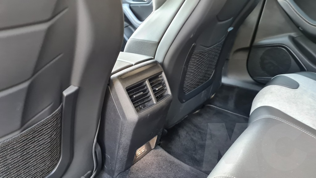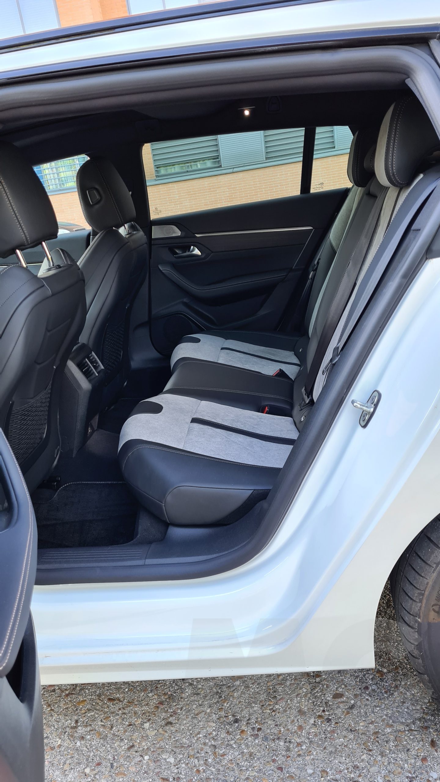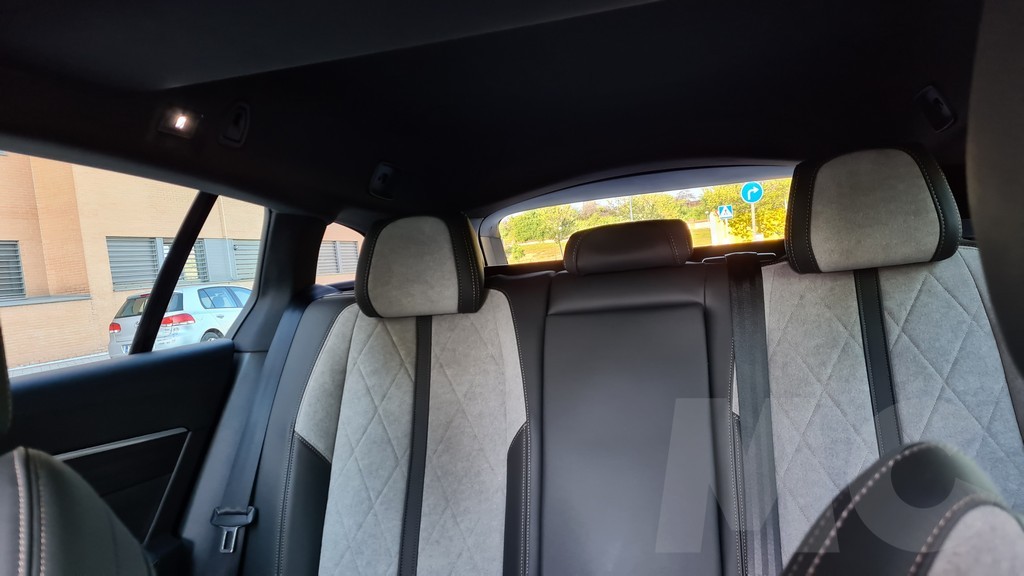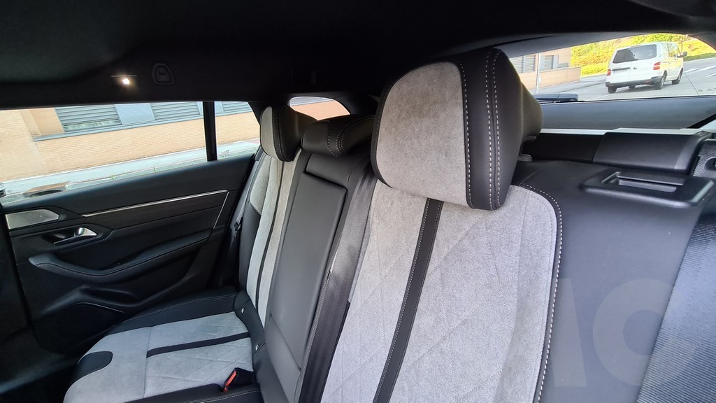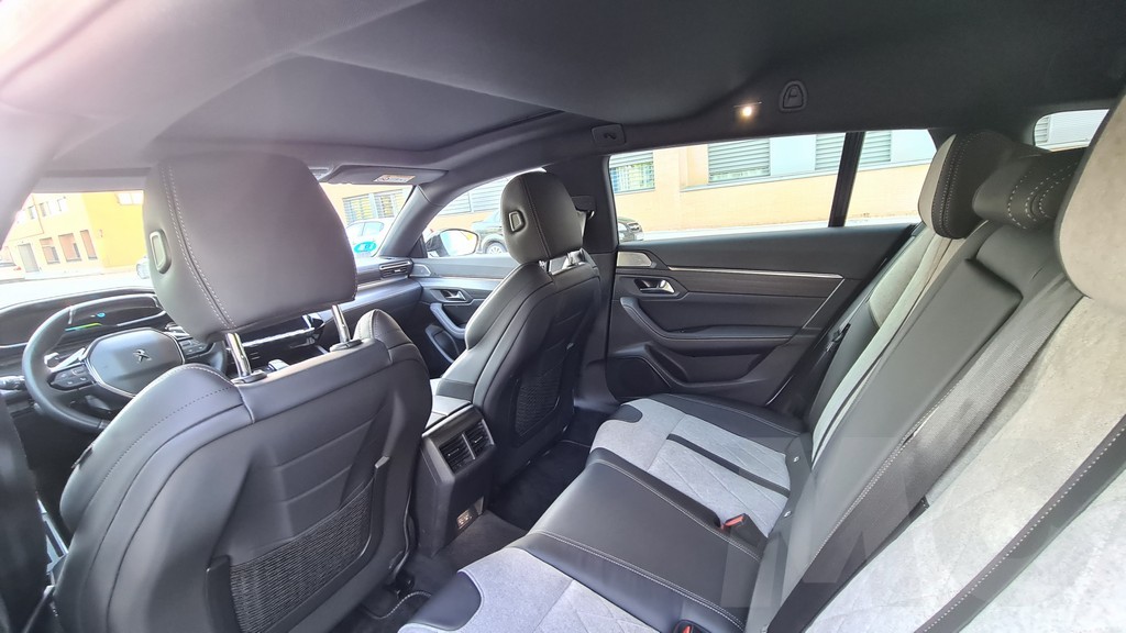 En la parte trasera el espacio es grande y podemos acomodar a tres personas sin problemas aunque con alguna estrechez en anchura. Hay espacio de sobre para las piernas y con respecto al 508 berlina se gana algo más de altura para poder acomodar a pasajeros con una estatura mayor. Para los pasajeros de las plazas de atrás encontramos dos salidas de ventilación y dos tomas USB para carga de dispositivos, aunque no haya controles independientes de la climatización.