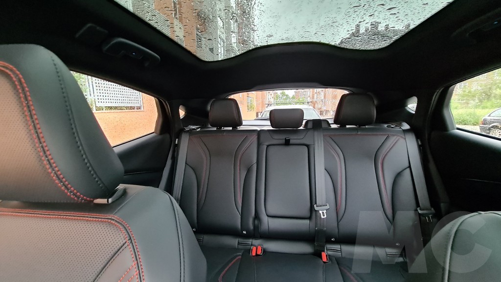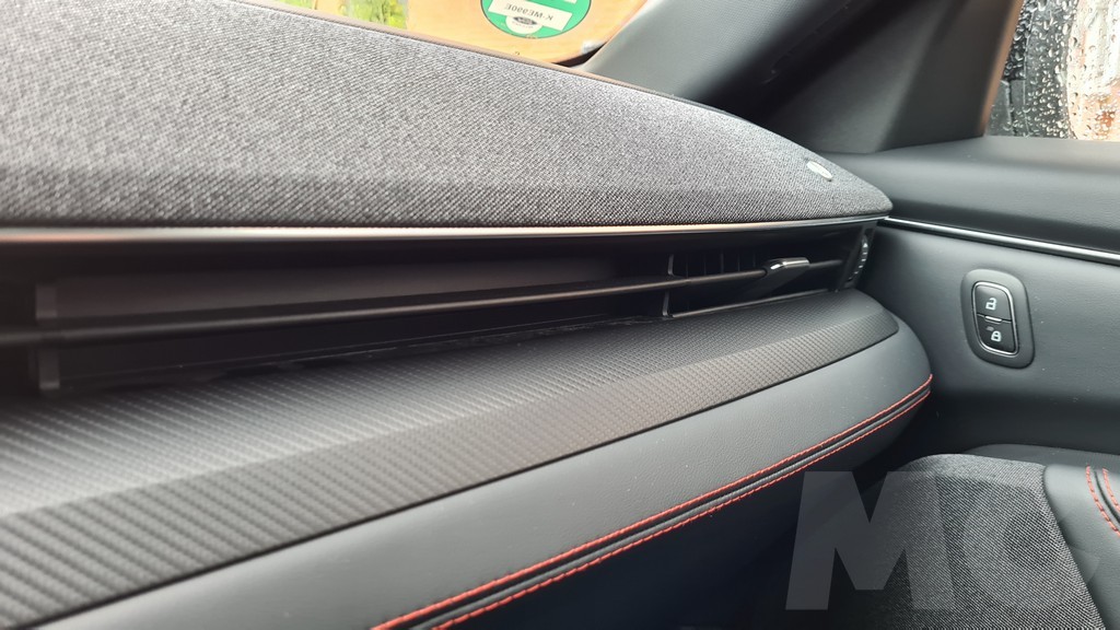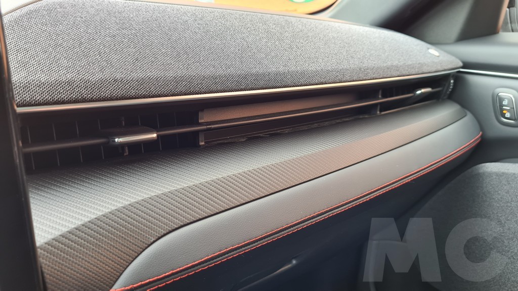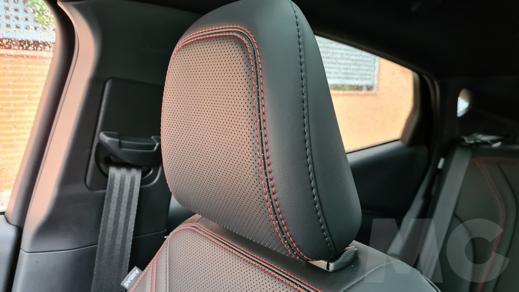 El interior es muy amplio y la la sensación de estar muy bien acabado. No parece que se hayan obsesionado en trufarlo de materiales de lujo ni de elementos demasiado refinados pero sí de detalles deportivos como las costuras en color rojos que encontramos en los asientos, el volante y algunas partes del salpicadero. En la parte superior del salpicadero se ha optado por un recubrimiento de tela de buen tacto que tiene aspecto de resistente y de fácil mantenimiento.