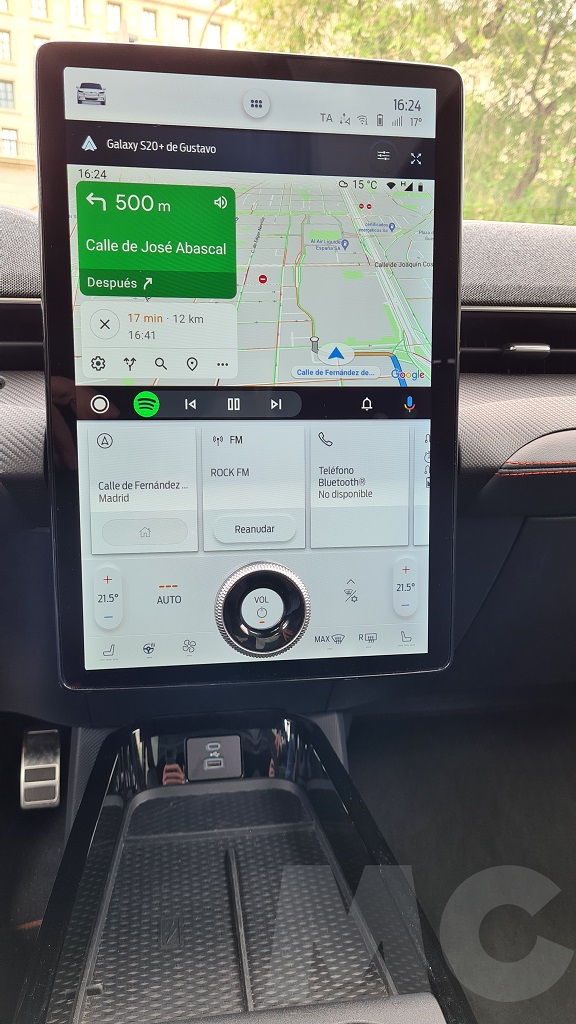 Llega el momento de hablar del elefante en la habitación o más bien el enorme selector circular empotrado en la gigantesca pantalla de 15,5 pulgadas que nos permite subir y bajar el volumen… Es cierto que proporcionar algunos botones y selectores para no depender al cien por cien de la pantalla táctil nos parece un acierto pero… ¿por qué insertar ese selector en la pantalla? Es algo que nos ha sorprendido y aunque funcionalmente nos convence estéticamente no lo compartimos.