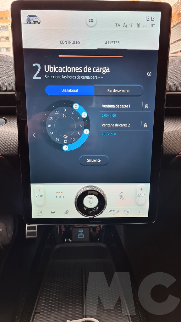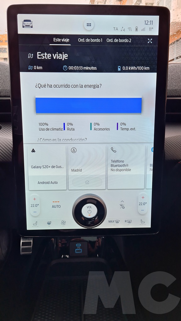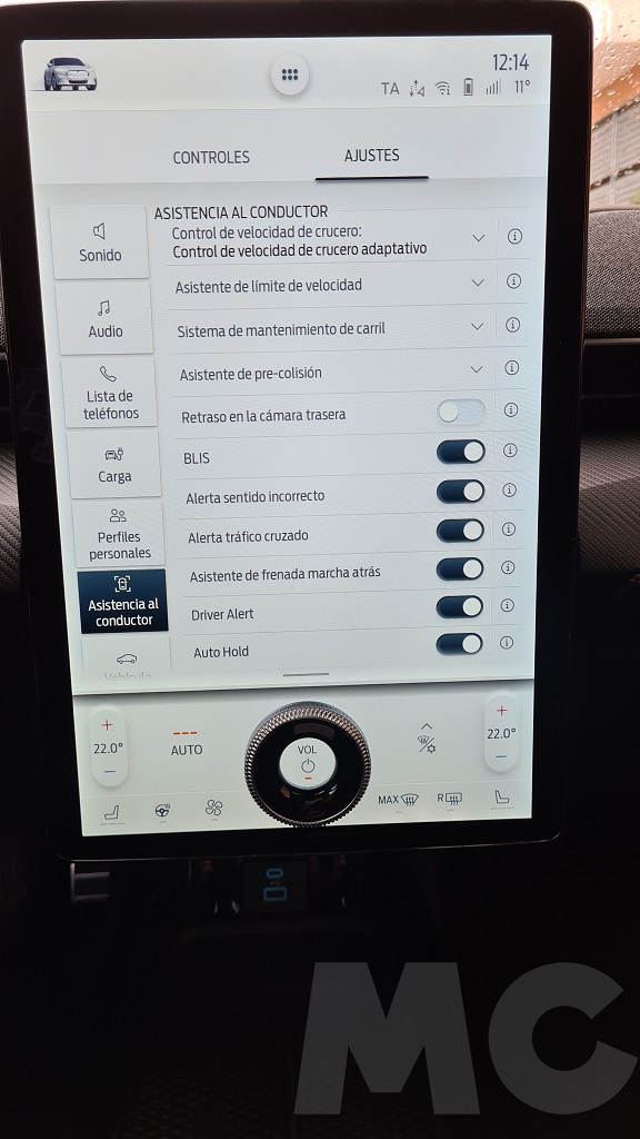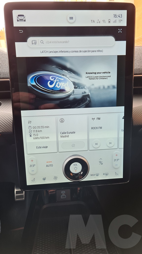Para explorar todas las opciones del sistema no tuvimos demasiado tiempo pero podemos desde cambiar el comportamiento del coche (susurro, activo o desatado), activar la función de conducción con un sólo pedal, activar el sonido de propulsión (para sentir que estamos a los mandos de un «verdadero» Mustang), configurar acceso sin llave para invitados, los sistemas de conducción autónoma, el navegador con opción de buscar puntos de carga o incluso aparcamiento «dinámico»… Y por supuesto información de todo tipo y muy completa, sobre todo en lo que respecta al consumo y las opciones de recarga programada.