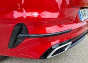 En la parte trasera destacan los estilizados grupos ópticos que se encuentran unidos por una tira de luz en color rojo y que se dividen cuando se abre el generoso portón para dar acceso al maletero. Los tubos de escape se encuentran separados y se insertan en el paragolpes con distintos volúmenes y detalles con defensas en negro y otra tira en negro en la parte inferior donde se han colocados los escapes tal y como hemos mencionado.
