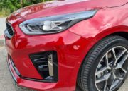 El frontal por otro lado es idéntico al del Ceed, pero lo cierto es que éste ya ofrecía algunas pinceladas deportivas que encajan perfectamente con la filosofía de este modelo como la parrilla estilo «tiger nose», la generosa toma de aire inferior en color negro, los faros alargados o los conjuntos ópticos laterales hundidos en el paragolpes. Todo ello rematado por un spoiler delantero con remate en color plateado que sobresale lo justo para dar un aspecto más agresivo.
