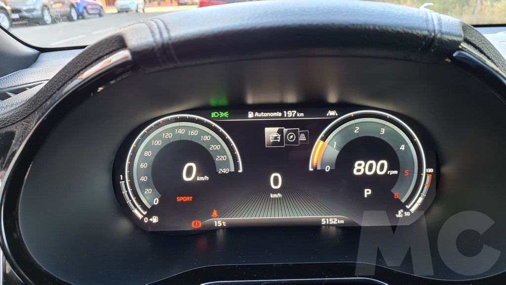 Los mandos se encuentran todos al alcance del conductor y su disposición es racional. Un ejemplo son las funciones que podemos activar desde el volante con botones de tamaño generoso fáciles de reconocer al tacto y reguladores con retorno o en forma de rueda con rugosidad, lo que también facilita mucho el que podamos activarlos sin mirar. Como en parte de los modelos de la gama Kia los indicadores tras el volante son digitales y tienen muy buena visibilidad.