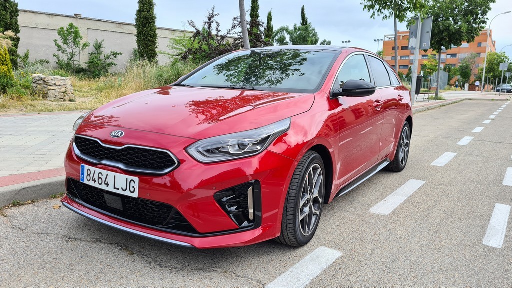 El frontal por otro lado es idéntico al del Ceed, pero lo cierto es que éste ya ofrecía algunas pinceladas deportivas que encajan perfectamente con la filosofía de este modelo como la parrilla estilo «tiger nose», la generosa toma de aire inferior en color negro, los faros alargados o los conjuntos ópticos laterales hundidos en el paragolpes. Todo ello rematado por un spoiler delantero con remate en color plateado que sobresale lo justo para dar un aspecto más agresivo.