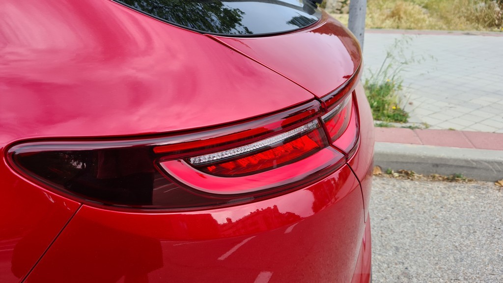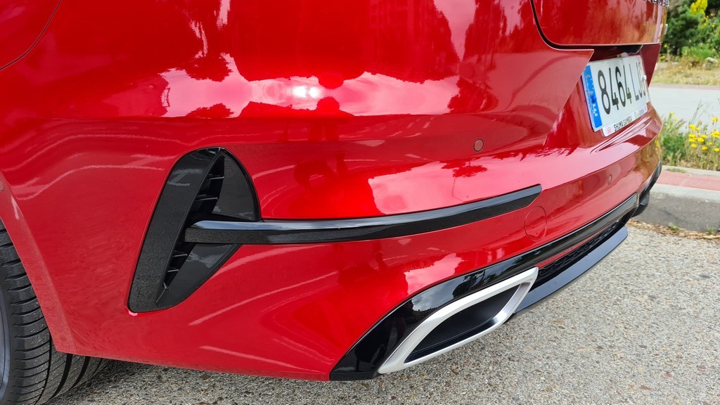 En la parte trasera destacan los estilizados grupos ópticos que se encuentran unidos por una tira de luz en color rojo y que se dividen cuando se abre el generoso portón para dar acceso al maletero. Los tubos de escape se encuentran separados y se insertan en el paragolpes con distintos volúmenes y detalles con defensas en negro y otra tira en negro en la parte inferior donde se han colocados los escapes tal y como hemos mencionado.