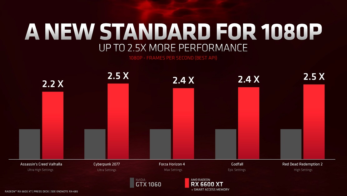 Los que nos leéis a diario recordaréis que, en su momento, dije que la Radeon RX 6600 XT iba a ser más potente que la RTX 3060, pero también un poco más cara, y que rondaría entre los 350 y los 399 dólares. Pues no iba desencaminado, según AMD la Radeon RX 6600 XT es hasta un 15% más potente que la solución gráfica de NVIDIA, y tendrá un precio de venta recomendado de 379 dólares. A efectos comparativos, os recuerdo que la RTX 3060 tiene un precio de venta recomendado de 329 dólares. Su precio en euros no ha trascendido, pero imagino que se situará en la franja de los 380 euros, aproximadamente.