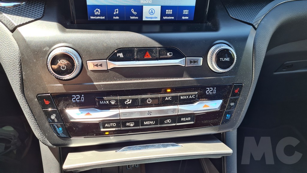 Los acabados tienen buenos materiales aunque no demasiado refinados y dan más impresión de ser resistentes que sofisticados aunque tienen buen tacto y las terminaciones y el ensamblado de las piezas son de buena calidad. Hay abundantes espacios para dejar objetos y de buen tamaño, además de un espacio para dejar el teléfono móvil con capacidad de carga inalámbrica. También encontramos un gran número de posavasos.