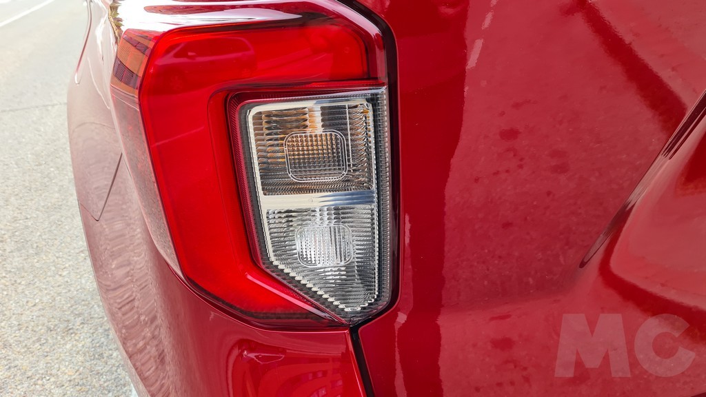 En la parte trasera domina el gran paragolpes, en línea con el tamaño del que encontramos con el frontal, y en los laterales los grupos ópticos en forma triangular que se extienden por el lateral. Sobre el paragolpes una protección de plástico lo protege a la hora de cargar objetos. El portón también es muy grande, con una hendidura en la que se coloca la matrícula y una gran superficie acristalada, también tintada, que ocupa toda la parte superior y que se funde con la parte de carrocería en color negro. Sobre la luna un spoiler bastante pronunciado que da algo de dinamismo al conjunto.