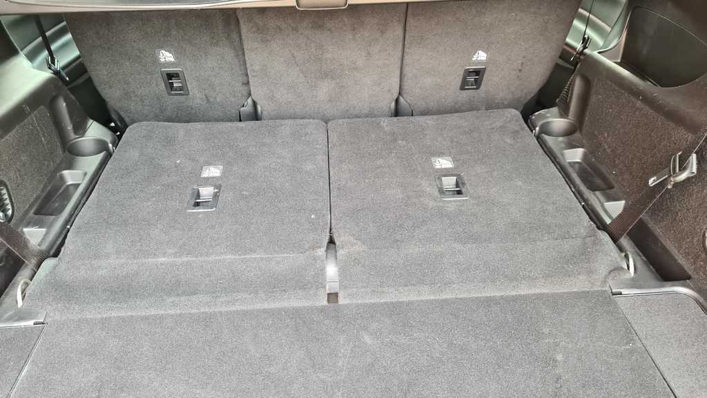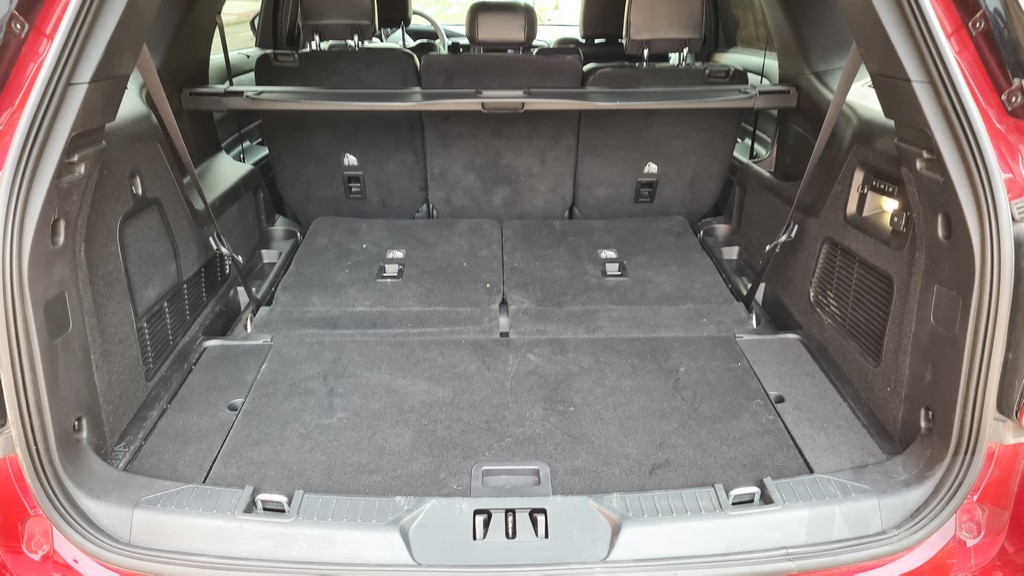 La tercera fila se puede plegar o desplegar con un mecanismo eléctrico accionable desde el maletero de forma sencilla. Con la tercera fila de asientos disponible la capacidad del maletero es de 240 litros, es bastante con respecto a otros vehículos similares. Con la fila abatida tenemos un maletero de 635 litros, una cifra considerable que permite transportar una gran cantidad de equipaje y otros objetos. Si plegamos la segunda fila la capacidad es comparable a la de una furgoneta pequeña, nada menos que 2.274 litros de capacidad.