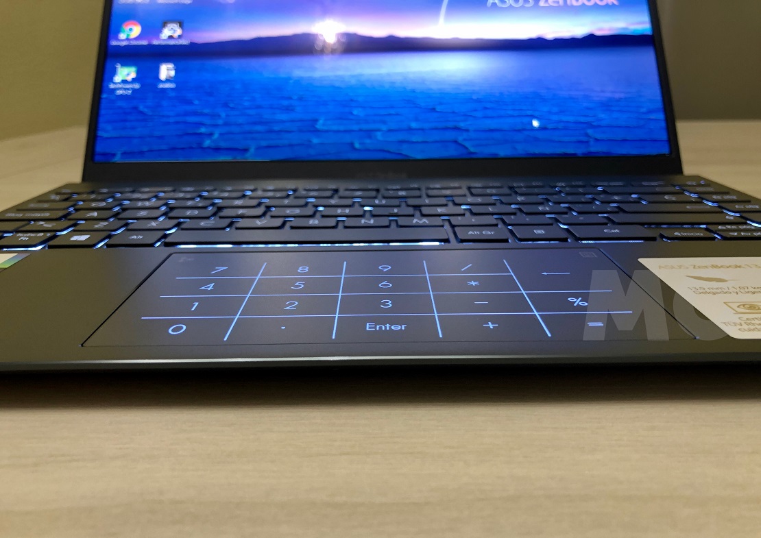 El teclado es de tipo chiclet, tiene retroiluminación en un elegante color blanco que, ciertamente, encaja de maravilla con el diseño del ASUS ZenBook 13 OLED (UX325), y tiene un recorrido de 1,4 mm. Por su parte, la almohadilla táctil puede trabajar como un pad numérico, gracias a la integración de la tecnología ASUS NumberPad 2.0. Podemos activar y desactivar dicha tecnología en cualquier momento con una simple pulsación.